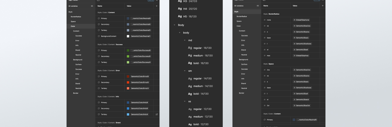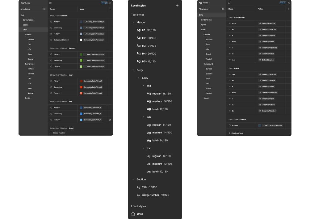 Defined size and space tokens in “Local Variables” of the Figma file.