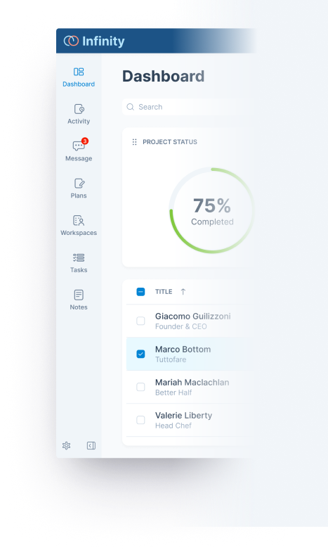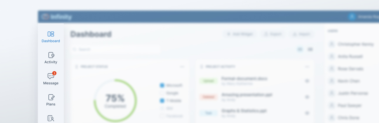 Display navigation items with good clarity. Use primary color to highlight current module without distracting users’ focus.