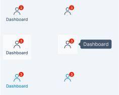 Design the navigation item with states using atomic components like icons, labels, badges, and tooltips.